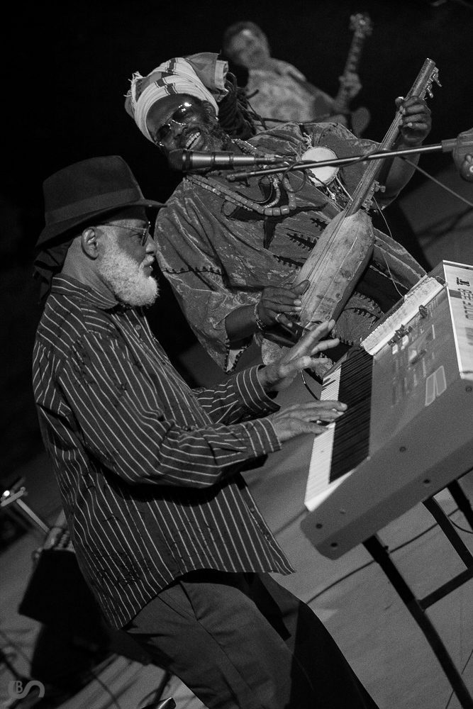 L’artista californiano ha esibito la sua solita verve chitarristica, da apprezzare la sua versione di “Sweet Sixteen”, mentre Carlos, non sempre precisissimo con la sei corde, dimostra di avere una gran bella vocalità. Non deve essere comunque stato semplice per la band di Giordano accompagnare e seguire le direzioni di Johnson, la sua imprevedibilità è stata parte integrante dello show. Il pubblico ad ogni modo ha gradito le quasi due ore di concerto. La serata era stata preceduta dal concerto pomeridiano di Jane Jeresa Trio presso piazza Mazzini, mentre il primo atto del Trasimeno 2018 è stato chiuso dal set, pieno di sudore e rock-blues, dei senesi The Big Blue House, alla Darsena Live Music. Il sabato si è aperto con la presentazione del romanzo di Francesco Sargenti intitolato “La Ballata Di Sleepy Jackson” al palazzo della Corgna, mentre all’ultimo momento il concerto di Mario Donatore, previsto nel pomeriggio, verrà sostituito dal trio di Giò Bosco. Sempre la Rocca ha ospitato una delle serate più attese di questa edizione. Griot Blues è un progetto che vede il sodalizio musicale di due importanti personalità, il carismatico Baba Sissoko e l’esperto Mighty Mo Rogers. In realtà la loro è molto più di una collaborazione artistica; è una vera e propria amicizia, un legame fraterno che viene riproposto in uno spettacolo genuino e colorato. Subito è evidente questo forte connubio, fin dalle prime note; l’unione di due culture così apparentemente lontane eppure una, la conseguenza dell’altra.